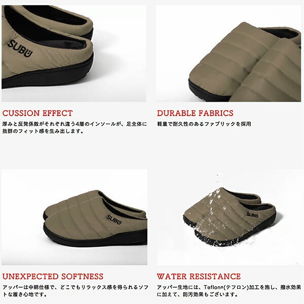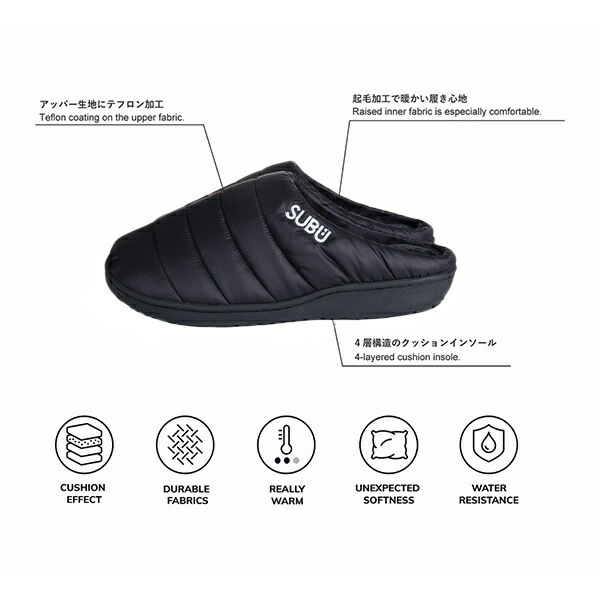 トップ > 雑貨・その他 > 生活雑貨 > サンダル SUBU スブ スリッパ 起毛加工 ボア 秋冬用 外履き おしゃれ 暖かい 素足で履ける ダウン風 4層構造 ソール ラバー 滑り止め あったかい 2020